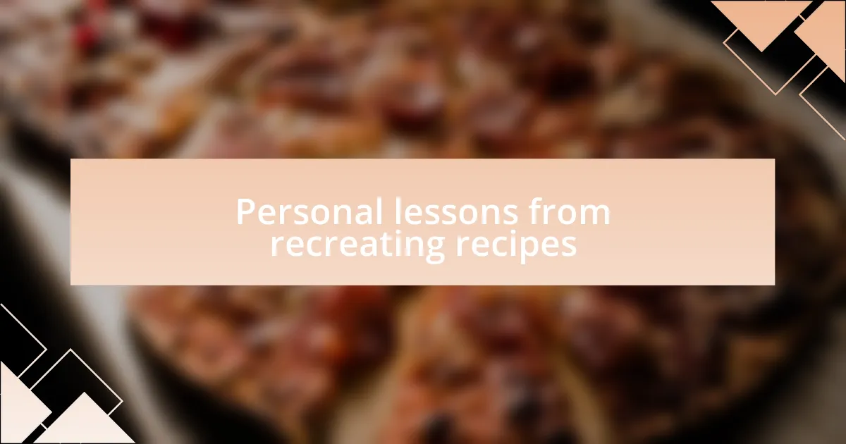 Recreating family recipes provides an opportunity to relive cherished memories while developing cooking skills. I vividly remember the first time I attempted to replicate my aunt’s chocolate chip cookies. The kitchen became a flurry of flour and sugar, and as those cookies baked, I could almost hear her laughter. It’s amazing how cooking can bring back those feelings, isn’t it?
