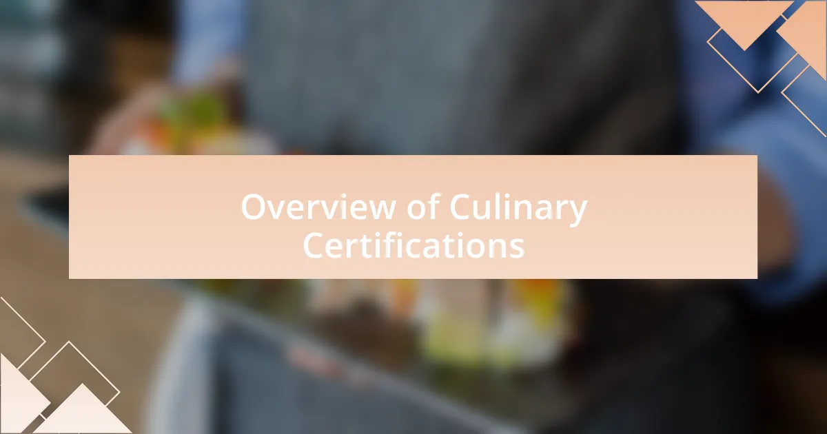 Culinary certifications serve as a critical stepping stone for aspiring chefs and culinary professionals. They not only showcase skill proficiency but also demonstrate a commitment to the craft. I recall my early days in the kitchen, where the idea of earning a certification felt like a badge of honor, fueling my passion and ambition.