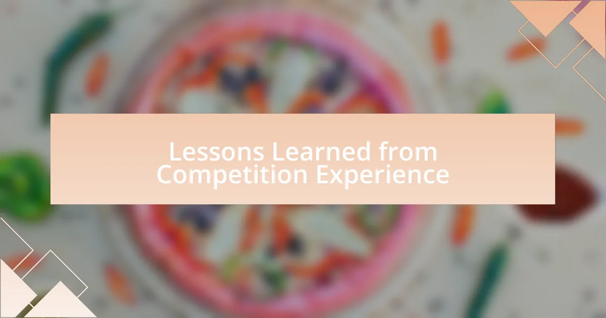 Competing in culinary contests has taught me invaluable lessons about resilience and creativity. I vividly recall a moment when a crucial ingredient went missing just minutes before my dish was due. Instead of panicking, I quickly adapted and improvised with what I had on hand. This experience was a reminder that flexibility and quick thinking are essential skills in the kitchen. Have you ever had to think on your feet in a high-pressure situation?