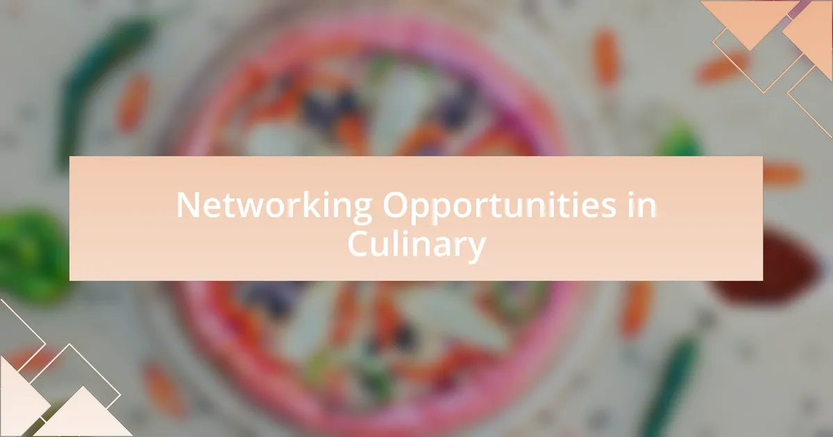 Networking opportunities in culinary competitions extend far beyond the event itself. After one particularly intense battle, I was approached by a food blogger who wanted to feature my work. That unexpected opportunity not only broadened my audience but also allowed me to showcase my creative style to a larger community. Isn’t it interesting how a simple conversation can lead to unexpected collaborations?